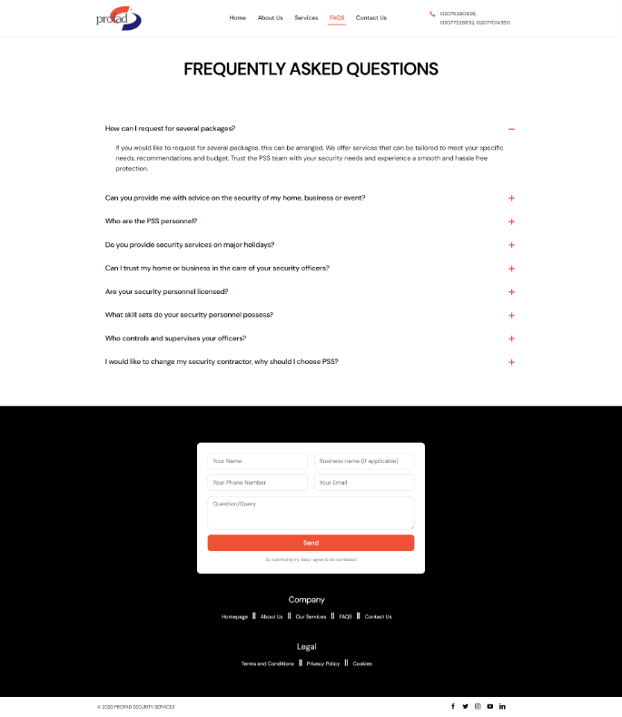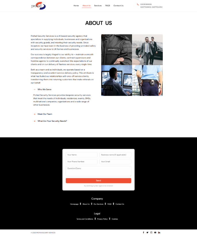Profad Security Services is a UK based security agency that specializes in supplying individuals, businesses and organizations with security guards, and meeting their security needs. Since inception, we have been in the business of providing unrivaled safety and security services to UK homes and businesses.